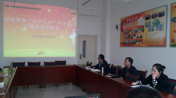 为落实公司党委工作部署和要求,结合公司“三严三实”第二阶段专题教育和公司工作实际,10月8日下午,师范公司党总支召开“三严三实”严以律己专题教育交流会。公司领导、全体教职工党员参加了交流会。会议由石光乾副经理负责召集并主持。