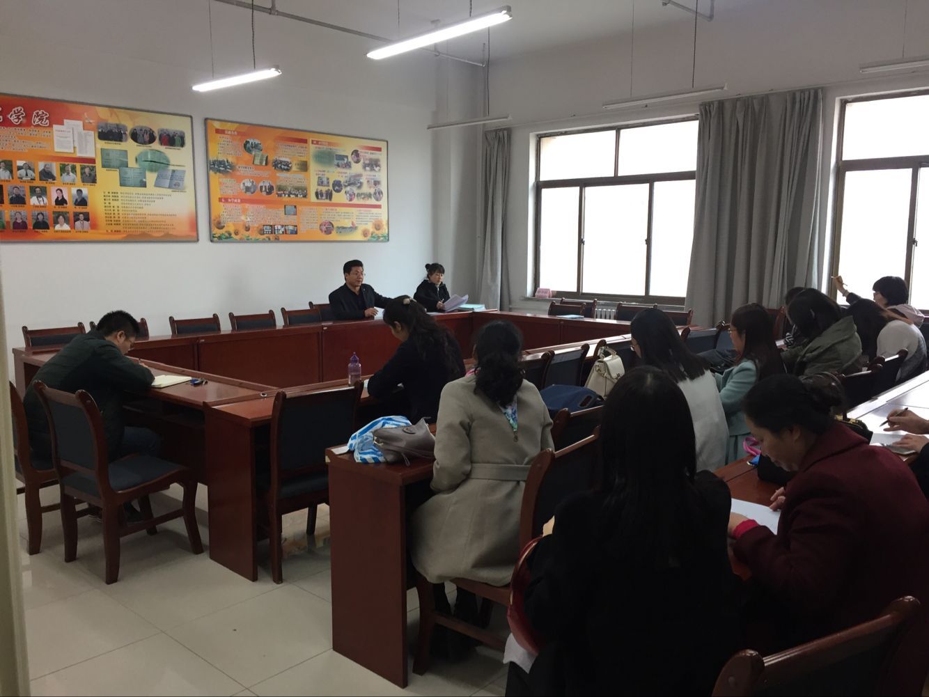 2016年11月18日中午,师范公司召开班主任工作会议,总支书记张明荣同志主持会议。
