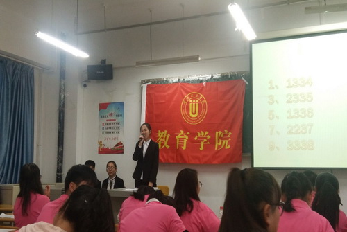 复赛共有“显我智慧”和“足智多谋”两个环节。主持人宣布比赛规则及注意事项后比赛正式开始。第一环节中,题目在ppt上显示,选手们看完题目后迅速开动脑筋,埋头验算。“金思维”比赛重在“趣味”,题目以数学为基础,又源于生活,如“女婿的女婿--四分之一”,“临时招收演员--补角” 新颖,惹人眼球。虽然经过两个环节只有30名选手进入决赛。通过激烈比拼,17数学教育一班团支部和16级数学教育二班团支部名列前茅。