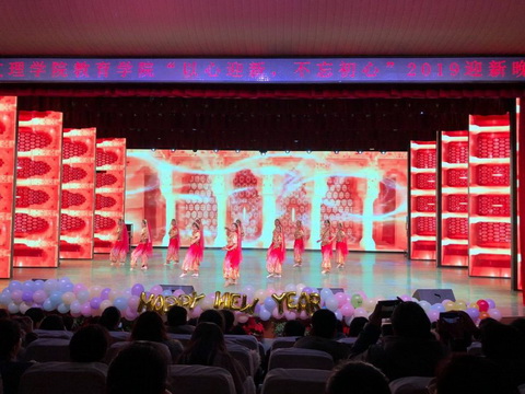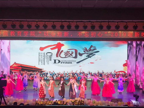 晚会随着主持人的精彩亮相拉开帷幕,首先一首被誉为“中国第二国歌”的《茉莉花》将我们带入了中国水墨画般的江南小镇,诉说着独特的东方美,接下来《高原天籁》中藏族独具特色的服饰和演唱方法也使在场的观众眼前一亮,而全场的第一个小高潮出现在第三个节目《印巴风情》上台,炫彩的舞台灯光加上姑娘们曼妙动感的舞步,引的观众连连喝彩鼓掌。接下来的小品《荆轲刺秦王》、弹唱《再见吧,喵小姐》、儿童舞蹈《大毛叫我来巡山》等等节目也是精彩纷呈,最后由学前教育专业员工带来的民族舞蹈《共筑中国梦》和心理咨询专业员工的集体诗朗诵《青春最好时》为整场晚会做了完美的收官。