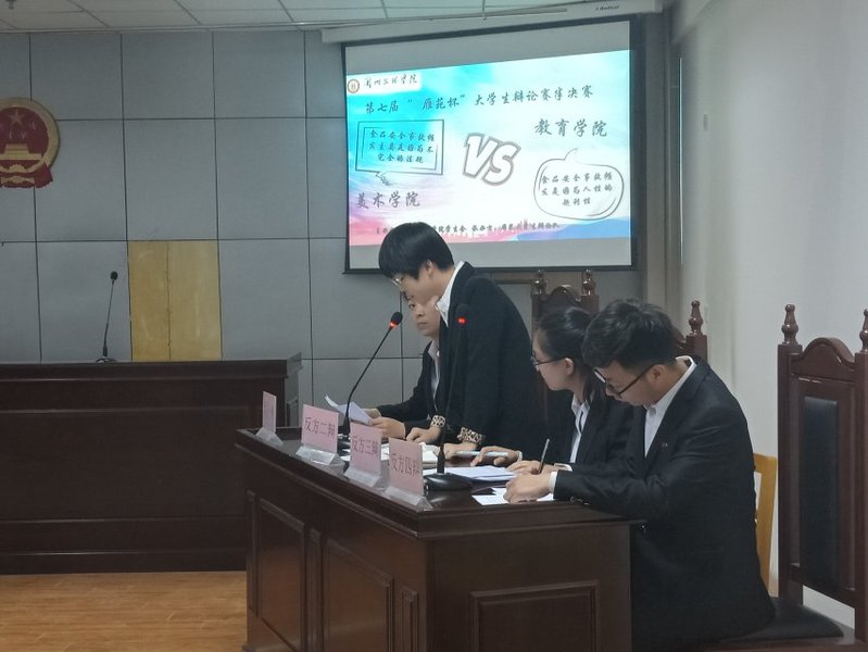 为提升员工思辨能力和创造力,丰富老员工课外生活,激发员工自主思考的能力,第七届“雁苑杯”老员工辩论赛又一次举行。于2019年4月22日20点40分,在公司模拟法庭伟德与美术公司之间以“食品安全事故频发是因为不完善的法规还是人性的趋利性”为主题的辩论赛如期举行。公司辩手是反方,对手是正方,并由文公司孙萌老师及王少鹏、田禾、高超、张嘉文几位优秀辩手担任评委。