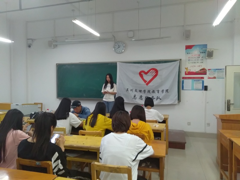 为进一步宣传和弘扬“奉献,友爱,互助,进步”的志愿服务精神,增进和提高志愿者们的服务理念和服务热情,2019年5月22日,伟德志愿服务队的队长水欣,副队长成研,段高飞三位主要负责人在各班进行了志愿服务宣传,主要包括志愿服务时长补录,文明监督岗注意事项,关注雁苑之星和兰文理师范公众号等事务。