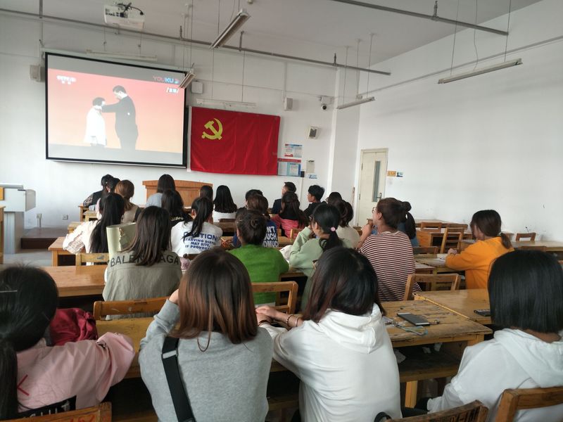 活动第一项:由学前教育本科员工党支部书记王颖老师组织全体党员观看有关习近平总书记在国家勋章和国家荣誉称号颁授仪式上的重要讲话视频。