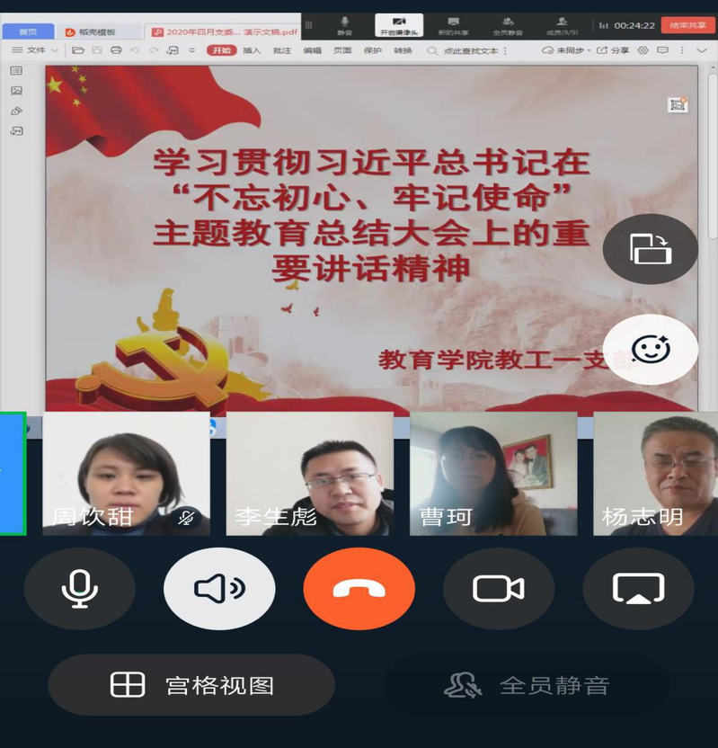 4月17日,伟德教工一支部通过钉钉视屏会议的形式开展了学习习近平总书记在“不忘初心,牢记使命”主题教育总结大会上的重要讲话的学习和专