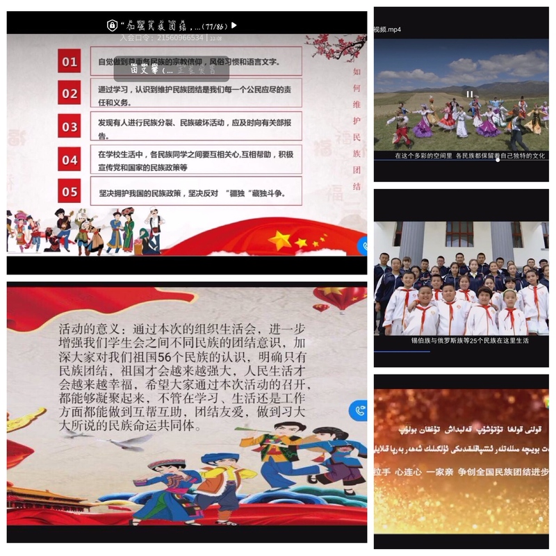 本次组织生活会首先员工会主席田文攀向同学们提出一些关于民族分布和国家的民族政策的基本知识,同学们都积极互动,踊跃发言。接下来观看《民族团结微视频》了解了维护民族团结的故事,田文攀向员工会成员详细介绍了“如何维护民族团结”的几点要求,比如自觉做到尊重和维护各民族的宗教信仰、风俗习惯、语言文字,坚决拥护民族政策,反对“疆独”“藏独”斗争等。作为祖国的一份子,我们要维护国家利益,从身边的小事做起,互相尊重,和谐相处,反对任何分裂祖国的行为。活动在歌曲《爱我中华》中接近尾声:我们要以“中华民族一家亲,同心共筑中国梦”为目标,多形式开展民族团结进步宣传教育活动,加强各民族同学交往交流,为加快建设幸福美好中国凝聚人心,汇聚力量。
