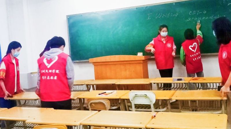 2020年6月28日下午,员工会各部长根据参加活动的人数以及需要清理的场地范围进行了分工。清扫过程中,各位同学行动迅速、分工合作,有条不紊地对各个教室的黑板、窗台、讲桌、地面进行了打扫,整齐的摆放了桌椅,清扫了楼道内的垃圾尘土,并对卫生死角进行了彻底清理。经过几个小时的辛勤劳动,我们的教室变的焕然一新。虽然同学们身上都沾上了灰尘,脸上也挂满汗珠,但脸上也洋溢出了满足的笑容。