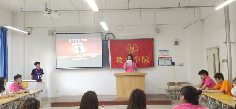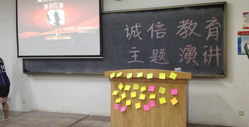 为了呼吁员工诚信做人,诚信应考。公司于2020年7月1日下午7:00在3-201教室举行“伟德诚信教育主题演讲”。 此次比赛共有五位参赛选手,比赛邀请了伟德分团委副书记杨彤、主席田文攀、各位部长及其干事。此次活动分为四个环节:个人激情演讲、个人即兴演讲、诚信格言警句征集和合唱诚信之歌。