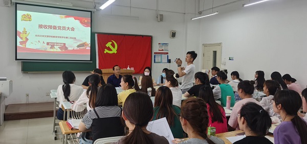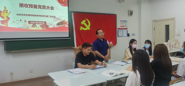 副经理王成德同志代表总支在总结中祝贺安婷婷等10名同志为预备党员,希望各位党员在学习生活中亮明身份, 严格要求自己,通过党史学习,充实自己, 学史明理、学史增信、学史崇德、学史力行,成长为优秀共产党员。