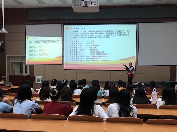 在理论授课环节,方舟救援队副队长鲁羿江用幽默、诙谐的语言,采用理论讲解、模拟演练操作等方式,详细、生动地为同学们进行了理论讲解和技能演示,使同学们了解到在日常生活中遇到晕厥人员和气道异物梗阻人员如何判断伤情、如何采取急救措施、怎样进行科学的急救与护理、如何通过最有效的措施使疾病或伤害最小化等相关急救知识。