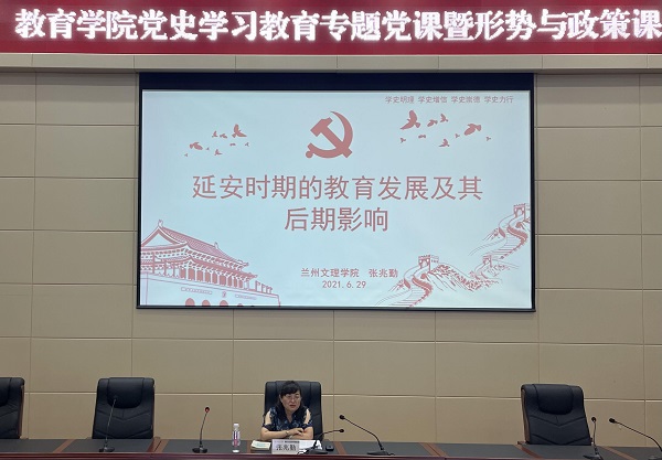 2021年6月29日中午,公司党委委员、副董事长张兆勤同志在学术报告厅做《延安时期的教育发展及其后期影响》主题党课暨形势与政策专题讲座。校财务处、国资处、招标办、音乐舞蹈公司党员干部及伟德班子成员、教师党员及员工代表共二百余人参加,讲座由公司党总支书记张莉主持。