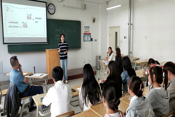 展示采取教案与评比相结合的形式进行。王巧霞同学《其实你很好》主题为课程,旨在帮助中员工克服自卑,树立自信,激发员工自身潜能,实现自身价值;周世慧同学的《给心灵做个SPA——情绪管理》,以团体训练的方式,通过情景剧表演,指导员工理智思考情绪冲动的后果并意识到他人情绪和自我情绪的关系,培养员工管理情绪的能力;范德芬同学《未知生,焉知死——中员工的生命教育课》让同学们在活动中体验、认识生命的独特性,懂得尊重生命、敬畏生命;张敏同学《另一个世界的我》的主题课程,引导同学们探索自己在日常生活中的情绪,有效的发展员工的自我情绪认知能力。4名同学结合自身实际,从提高中小员工心理素质、促进其身心健康和谐发展出发,在短短的20分钟内,彰显了良好的综合素质。最终周世慧同学脱颖而出,将代表公司参加2021年全国第二届老员工心理辅导课教学创新展示会。