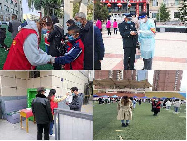 疫情以来,支部在外实习的党员们,迅速投入到实习地点的疫情防控工作中,配合社区,街道有序开展志愿服务,积极协助医护人员做好核酸登记、现场群众引导、秩序维护、科学防疫宣传等工作,默默守护群众的健康与安危。支部党员刘晓东同学,疫情以来一直坚守在九州管理委员会核酸检测采集点,每天晚上都忙到很晚才能回到宿舍,但是他却说:“比起那些日夜奋战的医护人员,我的这点累不算什么。当我真正经历的时候,我才懂得什么是信念,什么是奉献。我相信,我们的城市终将胜利”。支部党员文敏同学,奋战在拱星墩小学和焦家湾社区核酸检测点,她说:“作为一名党员,能为我的城市贡献一点自己的力量,尤为荣幸,疫情防控是每个公民,每个党员应有的责任和担当,请公司放心,守护在一线,我不会缺席”。支部预备党员陈海霞同学,在平凉市崆峒区平了幼儿园实习,疫情以来,她一直帮助社区的小区做测温等工作,她说:“党员就是应该冲在最前面,我只是做了我应该做的,我想用我的实际行动去守护他人的健康安全”。
