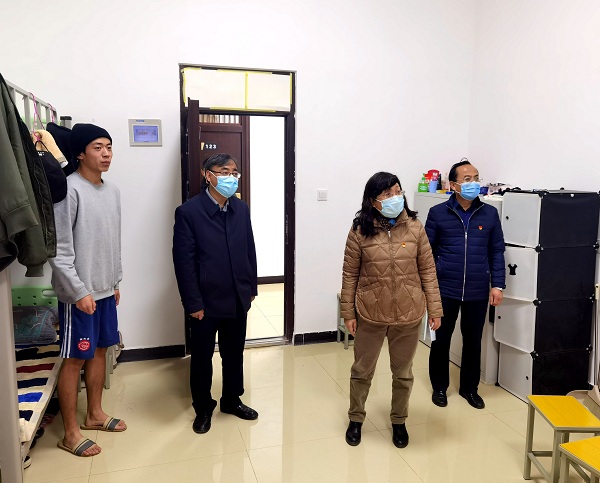 11月10日,公司党委委员、副董事长张兆勤深入6号楼、9号员工宿舍楼,看望慰问因疫情在宿舍进行线上学习的同学们,查看公司关于疫情防控期间员工宿舍管理服务情况。