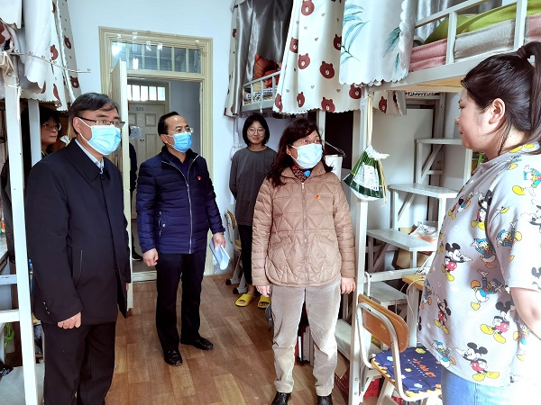 张兆勤副董事长指出,兰州此轮疫情严峻复杂,疫情防控的压力大,公司第一时间启动应急响应,实行校园封闭式管理、组织全员核酸检测、开展线上教学、暂停食堂堂食服务等疫情防控措施,全力维护师生的身体健康和生命安全。每到一间宿舍,她都逐一亲切询问同学们的家庭、学习和生活情况,向她们表达公司的关怀和慰问,并叮嘱同学们在疫情防控期间一定要认真做好个人防护,遵守公司疫情防控各项规定,时刻保持疫情防控意识,合理规划时间,保持作息规律,并鼓励同学们从自身卫生、宿舍卫生做起,营造清洁的校园环境,齐心协力筑牢校园疫情防线,并以良好的精神面貌和心理状态度过“特殊”时期的校园学习生活。