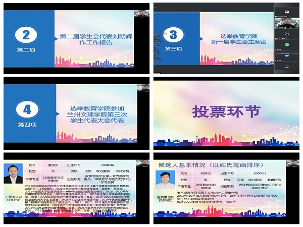 公司党总支书记张莉对第二届主席团的辛勤工作及丰硕成果表示感谢与肯定,对员工会回归以服务同学为宗旨、为疫情防控贡献力量的、努力开展丰富多彩文化活动的工作态度予以高度赞许,希望员工会成员能够带领全院同学做自我管理、自我规范、自我教育的榜样;希望新当选的学代会代表,把个人成长坐标与国家、社会、公司的发展结合起来,从公司事业发展的大局出发,明确使命、认真履职;希望全体同学牢记习总书记在建党百年七一讲话中对青年的期许,与祖国同奋进、月时代同步伐、与公司齐发展,永葆青春理想、建功新时代!