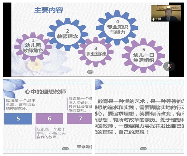幼儿园需要什么样的老师?孩子喜欢什么样的老师?家长放心什么样的老师?社会认同什么样的教师?这一系列问题是学前教育领域研究及学前教育实践永恒的话题。为满足公司学前教育专业员工深入学习和强化实践中的需求,提升专业发展理念,建立学前教育研究意识,伟德于11月30日晚邀请甘肃省军区昆仑幼儿园幼儿园园长王敏开展题为《幼儿园教师职业素养与能力培养》的专题讲座。公司党总支书记张莉、相关专业教师、学前教育专业员工在腾讯会议平台聆听讲座。讲座由副经理王成德教授主持。