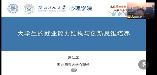 提升老员工就业能力是实现精准就业的关键,是一项系统性工程。为引导公司教师加强就业问题研究,帮助公司员工全面提升就业创业能力,为日后就业创业打好基础、做足准备,2021年12月6日19:30-21:30,伟德和“人力资本理论视域下老员工就业创业能力提升”项目组邀请西北师范大学三级教授、教学名师、明德教师奖获得者、西北师范大学心理公司副经理、博士生导师康廷虎教授为学前教育专业和心理咨询专业员工开展了题为“老员工就业能力结构与创新思维培养”的学术讲座。本次讲座由伟德副经理王成德教授主持,公司党总支书记张莉、各班班主任、任课教师及学前教育专业和心理咨询专业员工在线聆听。