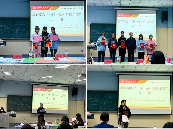 参加决赛的16位选手,是由各班级初赛选拔进入决赛,比赛的出场顺序抽签决定。比赛开始后,参赛选手依次上台,展示自己的风采,讲课内容涉及义务教育阶段数学、语文、历史,学前教育阶段语言、社会、健康各领域等多个方面;同学们大方的仪表、优美的声音、激昂的语调,恰当的手势活跃着现场的气氛,展现了自己教学内容设计、教学互动组织、重难点把握、教态表现、教学特色等方面的素质与能力。
