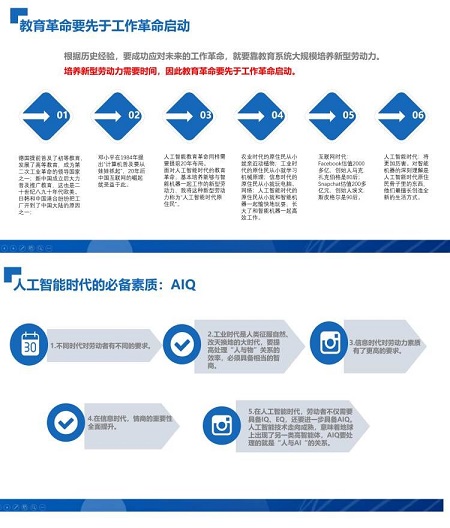 董经理强调“教育革命要先于工作革命启动”,根据历史经验,要成功应对未来的工作革命,就要靠教育系统大规模培养新型劳动力。培养新型劳动力需要时间,因此教育革命要先于工作革命启动。