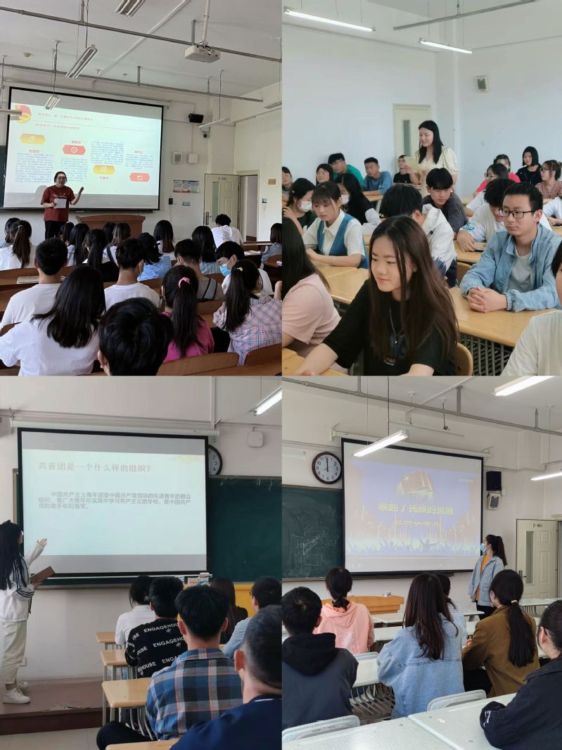 2020级数学与应用数学2班妥小雪、韩钰,2020级数学与应用数学1班闵晓兰、方艺蒙以青年视角为团员青年们带来了一堂以“话百年共青团史 写时代青年新篇章”为主题的生动宣讲。宣讲时,融入了员工们互动问答、朗读书信、观看视频等形式,讲活百年团史,让团员们感受中国青年从未消退的奋斗底色,启迪青年团员在新时代中充分发展自我,拼尽全力多学本领,接续奋斗。支部组织委员李志军带领大家学习了习近平总书记在中国人民大学考察时的重要讲话精神。2019级数学与应用数学2班周梦瑶带领大家同唱《光荣啊!中国共青团》,一起回顾革命先辈的青春故事。
