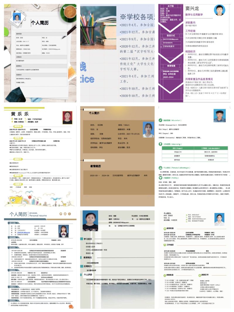 简历是一张名片,简历不简单,同学们结合专业特色,以视频、Word、PDF等形式设计了内容丰富、让人眼前一亮的简历。同学们的简历主要包括基本信息、求职意向、在校经历、所获荣誉等方面,简历内容充实、条理清晰,流畅准确的表达了求职者的意愿;版面设计精美大方,色彩搭配精致简洁,凸显出自身的优势与特长,具有创新性。经过专业教师的评分,最终评选一等奖2名,二等奖4名,三等奖5名,优秀奖10名。