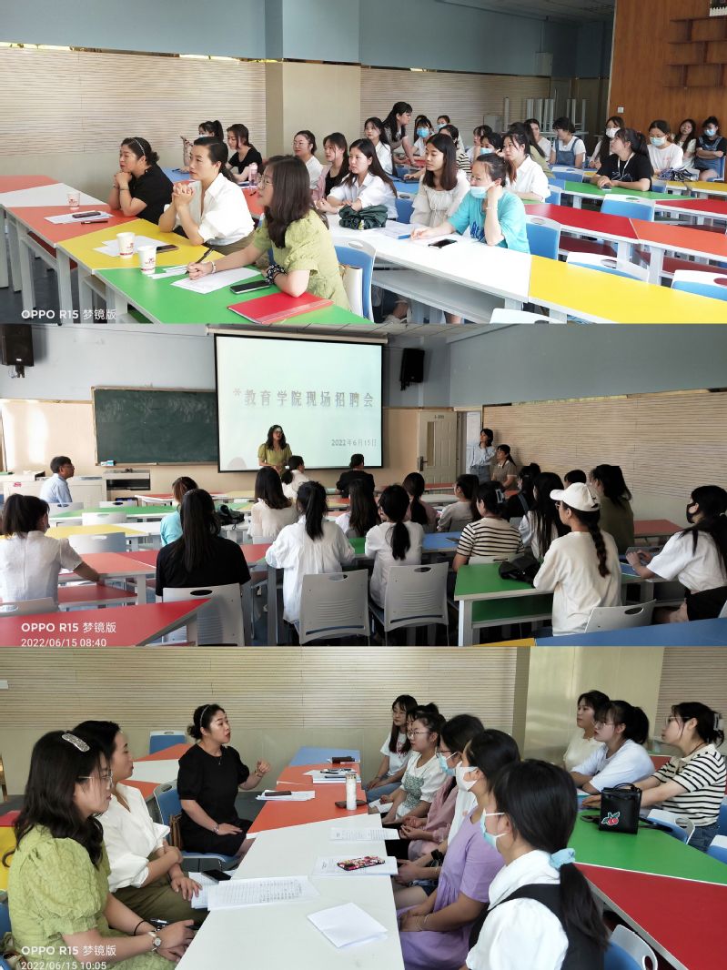 随后,招聘单位对有意向的员工进行了现场面试,面试采取说课和教师基本素养相结合的形式进行,主要考察员工的学科知识、教师基本素养、语言表达能力、仪表举止等。说课分值占30分,答辩分值占10分,教师基本素养占60分。最终有10位同学成功与单位打成协议。