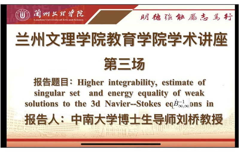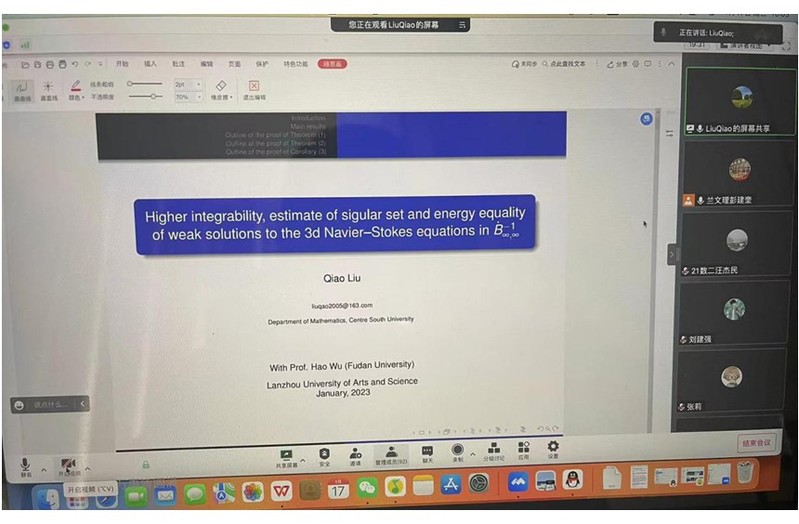 2022年12月17日,由伟德官方网站伟德主办的“Higer integrability,estimate of singular set and energy equality of weak solutions to the 3d Navier-Stokes equations in ”的线上讲座,在腾讯会议顺利举办。讲座特别邀请中南大学数学与统计公司博士生导师刘桥教授主讲,公司领导班子、数学专业员工和专业教师150余人参与,讲座由副经理彭建奎博士主持。