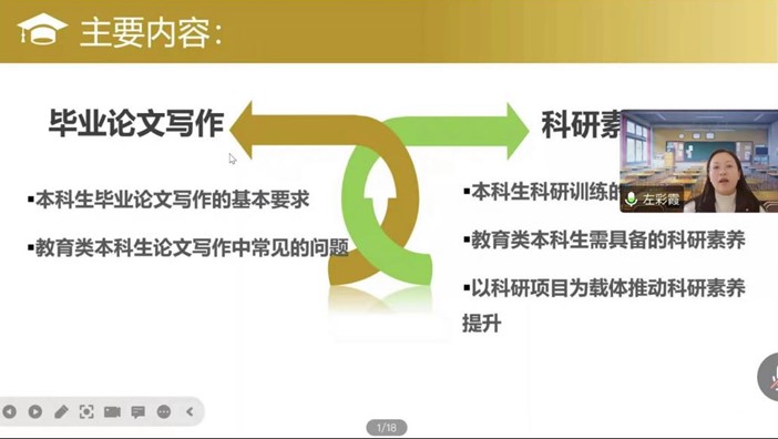 为激发本科生学习情趣与科研热情,提升科研素养,有效强化本科生的学术规范和学术道德意识,2022年12月19日下午14点整,伟德特邀在读博士左彩霞老师开展《教育类专业本科生科研素养提升》讲座。公司领导班子、教育类专业员工和专业教师210余人参与,讲座副经理王成德教授主持。