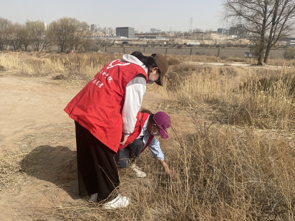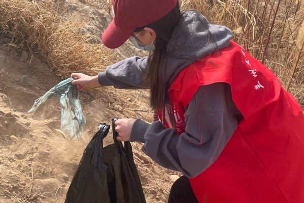 到达集合点、确定好打扫区域后,志愿服务队员们对黄河岸边沿线树池、河沿垃圾和树枝悬挂物进行了分类清理,志愿者们合理分工、密切配合、拾捡垃圾、进行分类、搬运袋子。志愿服务队队长马存玉同学表示,希望更多的同学加入志愿服务队,关爱母亲河,加强生态环境保护意识,通过实际行动共同提升沿河人民群众生态环境的获得感和幸福感。