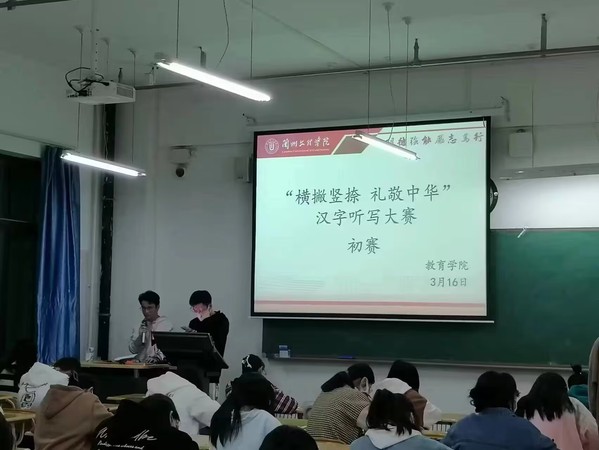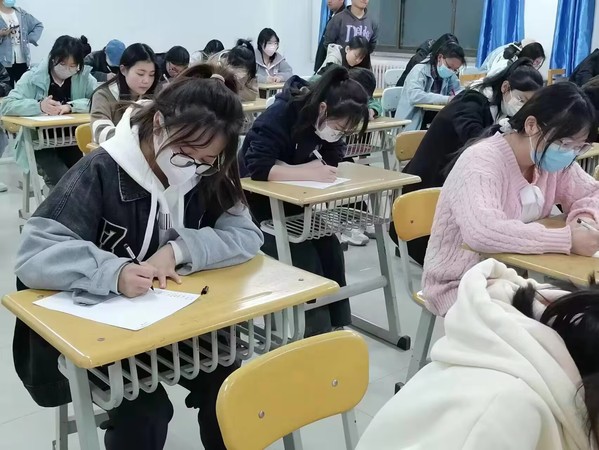 此次比赛分为“词语听写”“一字变多字”“移花接木”三个阶段进行。主考官对题目进行朗读和解释,参加听写的同学进行答题,听写的词语既有生僻字,也有常见字,考察了选手的汉字识记量与书写规范,听写过程中同学们聚精会神、专心作答。经激烈角逐,5名同学脱颖而出,成功组队进入校级复赛。