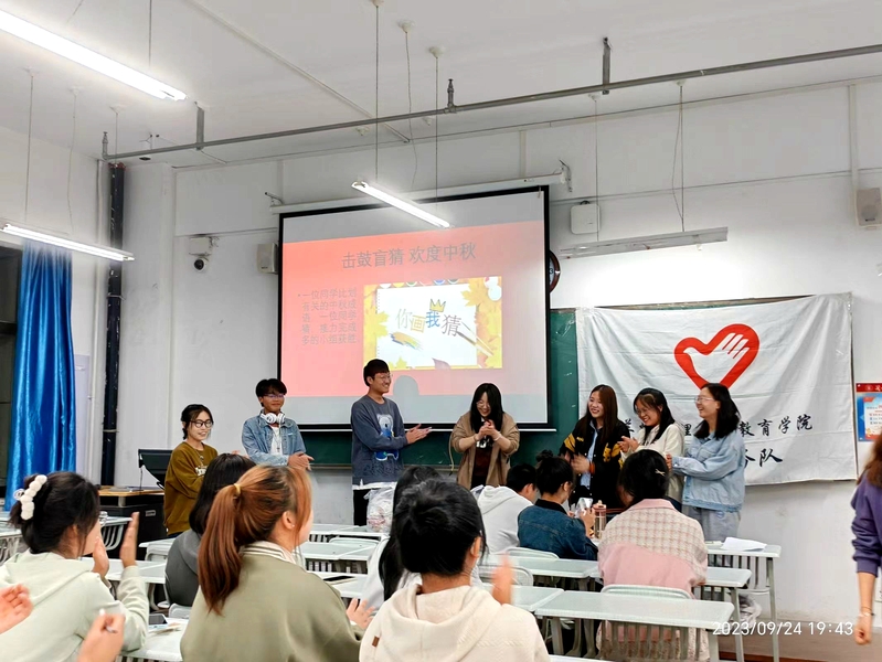 月明星稀,妙趣盎然,活动丰富多彩,分为三个环节:“奇思妙想,传颂中秋”猜灯谜; “击鼓盲猜,欢度中秋”,你画我猜; “视觉盛宴,共赏中秋”观影。同学们怀揣着对中秋佳节的殷切期望,积极活跃地参与到活动中,共同游戏,享受中秋团圆之美。