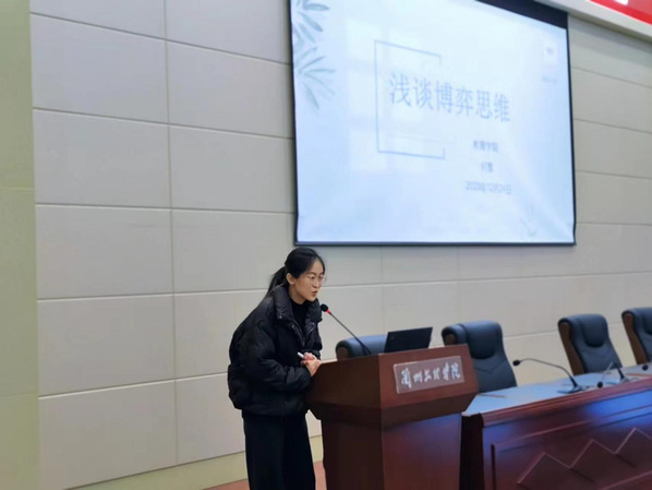 2023年12月25日下午,伟德官方网站伟德教师何雪博士在致远楼学术报告厅举办《浅谈博弈思维》学术讲座,21级数学与应用数学专业与22级数学与应用数学专业全体员工参加,讲座由伟德副经理彭建奎主持。