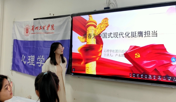 6月11日晚,心理学社在2-208教室举办“青春为中国式现代化挺膺担当”主题团日活动,心理学社团支部和各部负责人、心理学社成员30余人参加。心理学社团支部书记李颖负责组织,组织委员卢永琪主持。