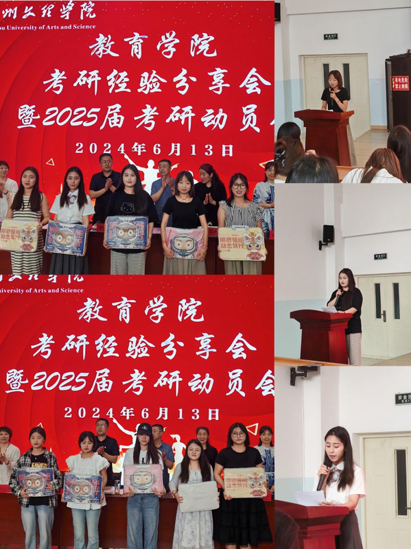 考研上岸员工代表安莉波、任丽丽、安智依次上台,分享了他们的考研经验。