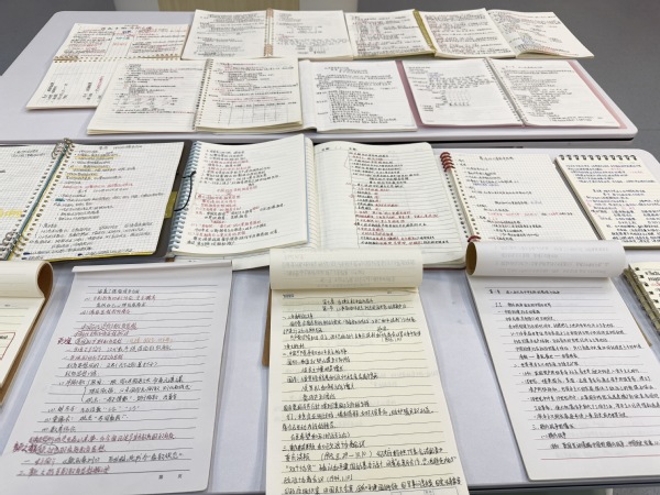 此次笔记展览内容丰富多样,既有英语题型分析、语法识记、写作训练、课堂手记等英语笔记,也有思路明确的专业课学习笔记、重点突出的知识点梳理、环环相扣的思维导图。一笔一画之间,凝聚着员工的勤恳与专注,记录着与书中知识灵魂对话的过程,得到了老师和同学的一致称赞。