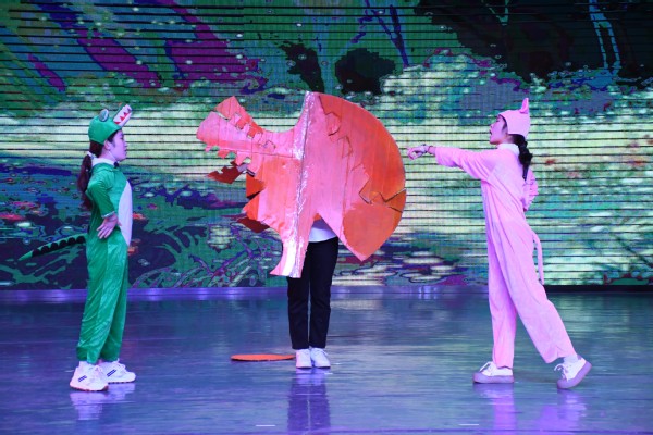 晚会在活力四射的民族舞蹈中拉开帷幕,通过情景剧《谁咬了我的大饼》和奥尔夫《大王叫我来巡山》展示了学前教育专业特色,心理情景剧《校园里的阳光与阴霾》引发了对校园霸凌问题的关注,古筝独奏《双面燕洵》和舞蹈《唐印》呈现了中国文化的底蕴。晚会中的“击鼓传花”互动环节,更是将气氛推向高潮,台上台下互动热烈。