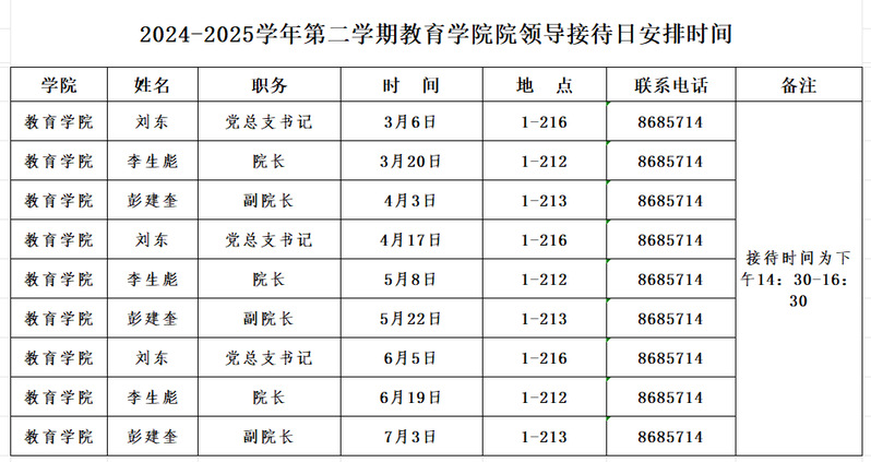 2024-2025学年第二学期伟德院领导接待日安排时间