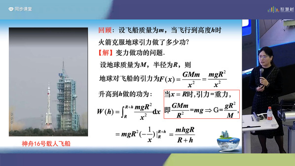 贺慧霞老师以神州十六号载人飞船和嫦娥6号探测器发射为切入点,探讨航天器发射中的物理问题及其与数学分析的联系,借助全景教学空间板书推演与动态图示,对比了暇积分与无穷积分的关系。