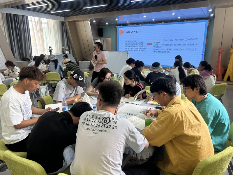 见习中,同学们深入参与了多项实践活动。5月26日,同学们分组进入班级,实地跟岗参与一日活动中的保育教育工作,近距离观察和学习幼儿园教师的日常工作流程。下午,幼儿园为见习生们精心组织了园本课程建设实践与案例分享活动。5月27日的活动重点聚焦绘本教学领域,同学们首先观摩了生动有趣的游戏化绘本教学活动展示,随后围绕“绘本1+n活动的组织与实施”这一主题展开了深入的交流讨论,进一步深化了对绘本教学多元化内涵与实践路径的理解。