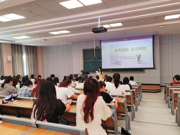 活动由2022级小学教育1班杨雨轩同学主持,8组同学分别展示了教育科学研究能力、教学实践能力、课本剧表演能力。22级小学教育以教育科学研究能力为主题,22级小学教育1班的马玉芳做了题为《小学语文课堂小组合作学习有效性提升策略研究》的汇报,22级小学教育2班的赵薇做了题为《小学中高年级员工数学逻辑思维能力的现状调查与培养策略》的汇报。23级展示小学语文、英语教学能力,23级小学教育班的张津铭展示《葡萄沟》、于红展示《桂花雨》,何百蓉展示《The colourful world》、韩茹彤展示《Look at me》。24级展示课本剧改编表演能力,24级小学教育班的窦鹏铭等人表演《扁鹊治病》,杜淑茗等人表演《陶罐与铁罐》。